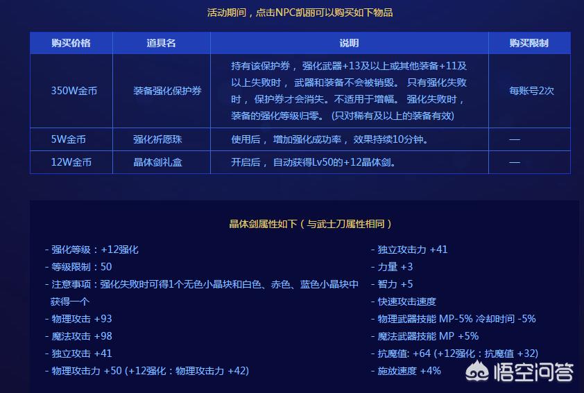 但是其他的活动可以去做一下,对于强化的活动,我只是买了一些12的晶体剑!等待活动结束后再去强化!