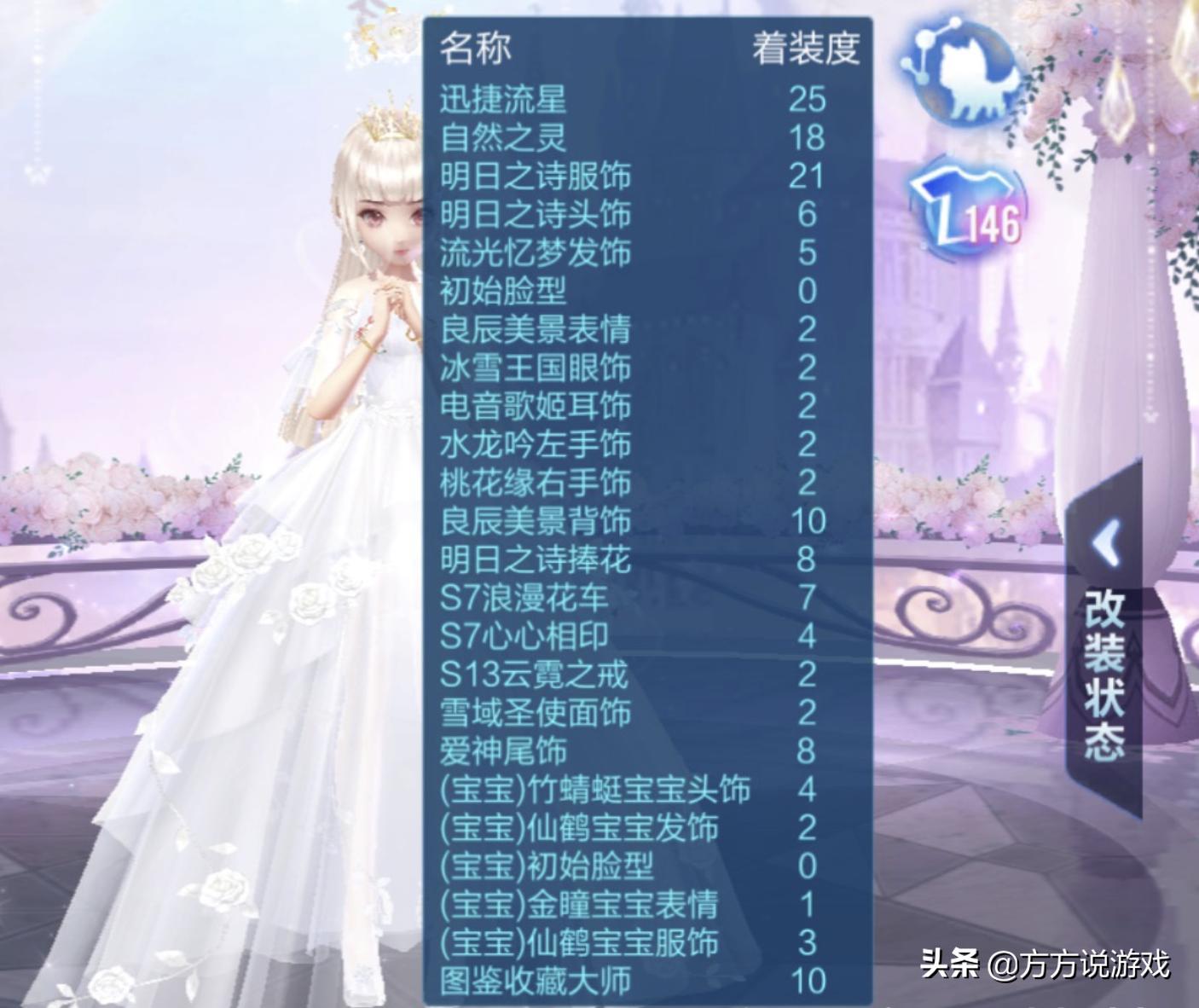 这里是方方说游戏,现在飞车手游目前最高着装度是146哦,以下就是相应的着装度清单。