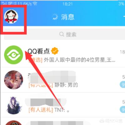 1、首先,登录手机QQ,点击左上角头像。