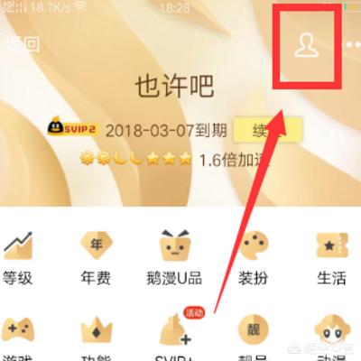 4、之后进入到我的超级会员页面中,点击页面右上方的“人头”按钮,进入个人中心页面。