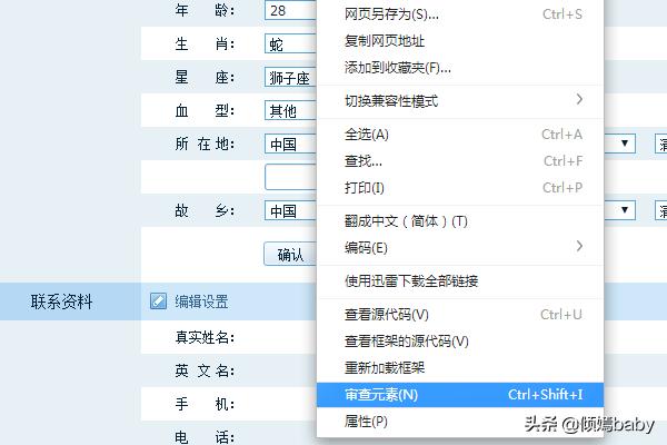 3.鼠标右键点击,选择“审查元素”,很多的浏览器都具有这个选项,IE这些是没有
