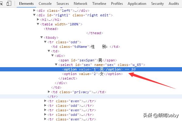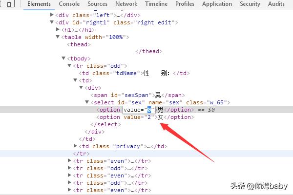 4.在这里可以看到性别为的值为1,性别为女值为2,其实这里隐藏了性别为空白的值为0,我们修改一下它