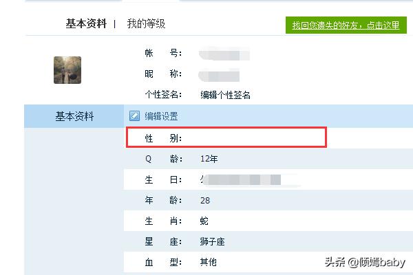 QQ个人资料中性别怎样设置为空白显示