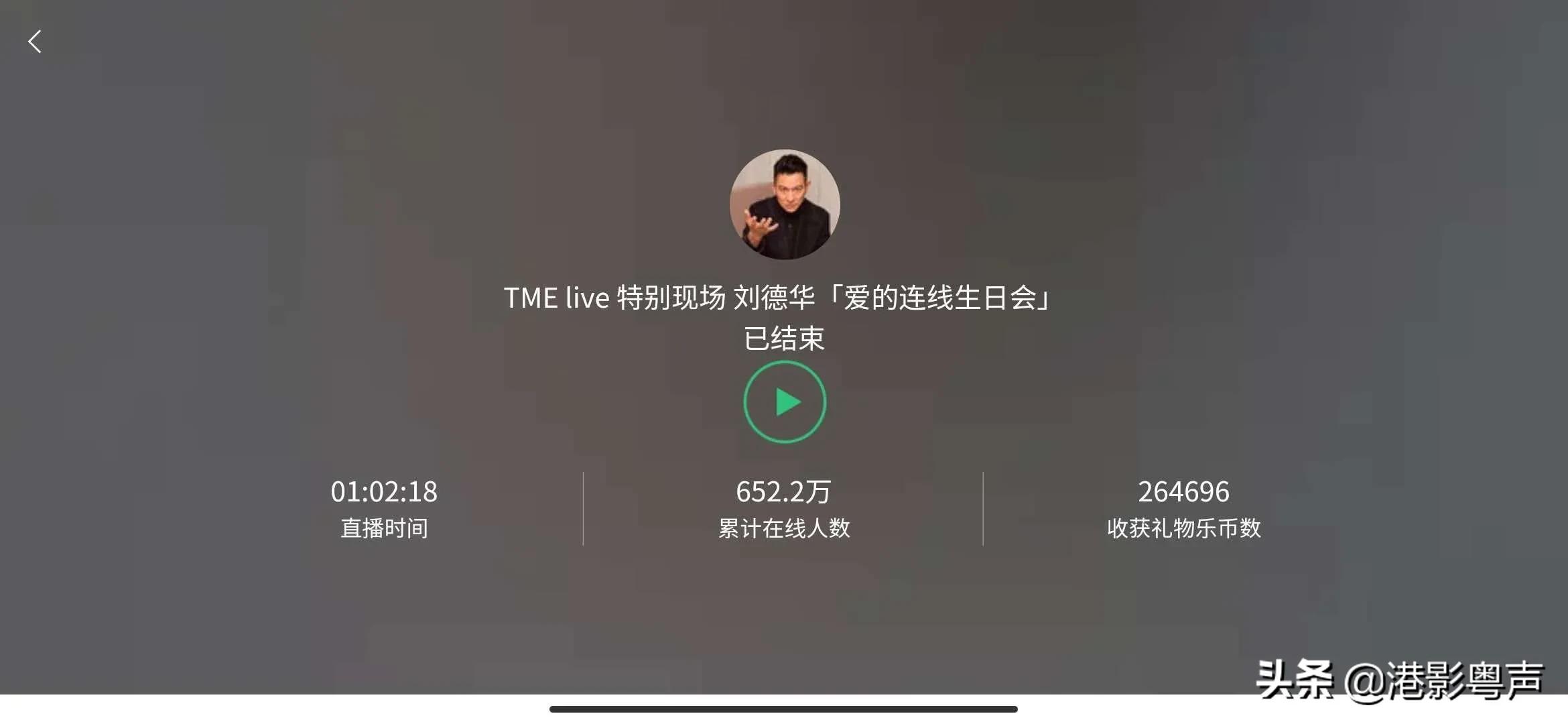刘德华生日直播,qq音乐652万酷狗72万人在线观看算多吗