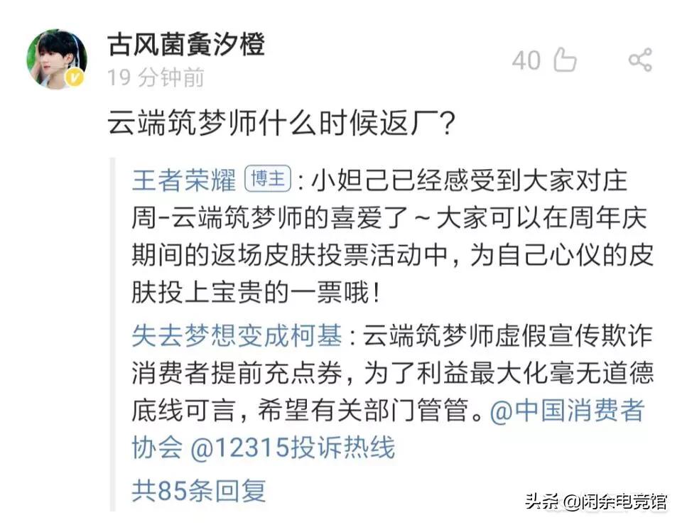 另外最近典藏皮肤也被传的沸沸扬扬,因为官方之前就承诺过,李白在今年会有一款典藏皮肤,这引起了玩家们很大的兴趣,但是一直等到现在,官方也没有再次回应这个问题,但是这名大佬侧面提到了这个问题,成现在诸葛亮的人气现在比较高,就看官方有没有这样的想法,这其实也算是一个暗示,如果回应够多的话,他们肯定也会考虑一下。