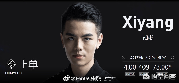 胡彬,出生于湖南娄底,游戏ID:Xiyang,《英雄联盟》职业选手,2014年加入OMG战队,2017赛季OMG战队上单选手。