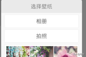 5、在出来的选项中,选择【相册】,如果想做壁纸皮肤的就是现在所处的风景,可以选择拍照。