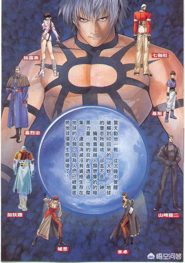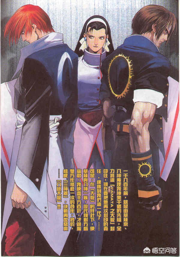 记得当时一个高年级男生告诉我们他对这些角色很了解,然后就口若悬河的讲给我们听,这个叫棍子,那个叫猴子,那个穿白衣服的叫影子...当时觉得他懂得好多,后来才明白,原来他说的是比利、蔡宝奇和神乐千鹤。依稀记得当年好像只知道那个帅气的红发少年叫八神庵,连草剃京都不知道名字,坊间流传着“火神”的名号。