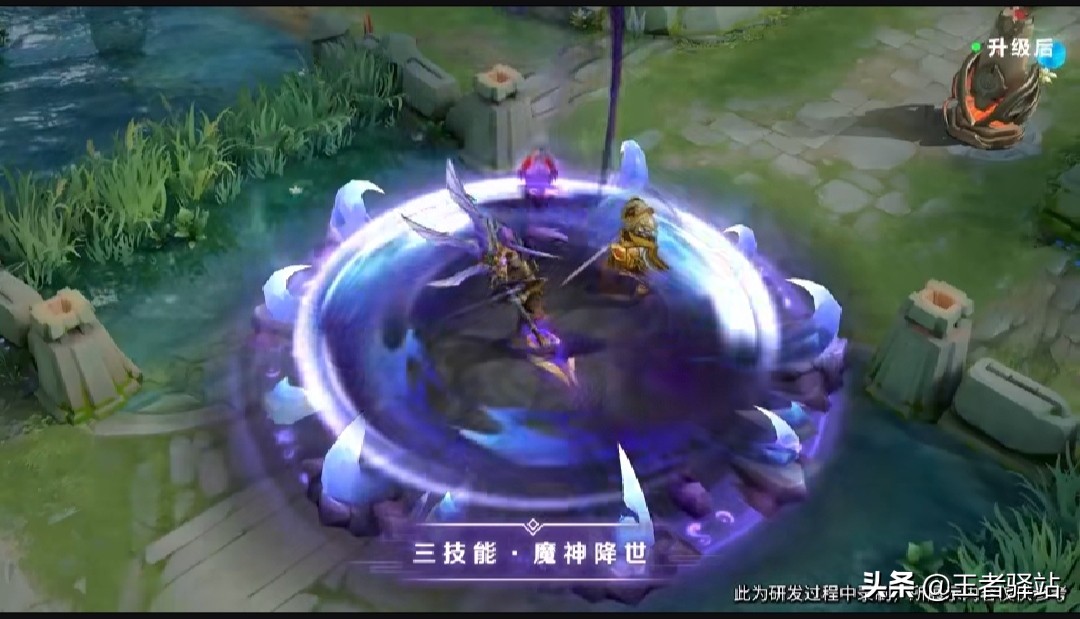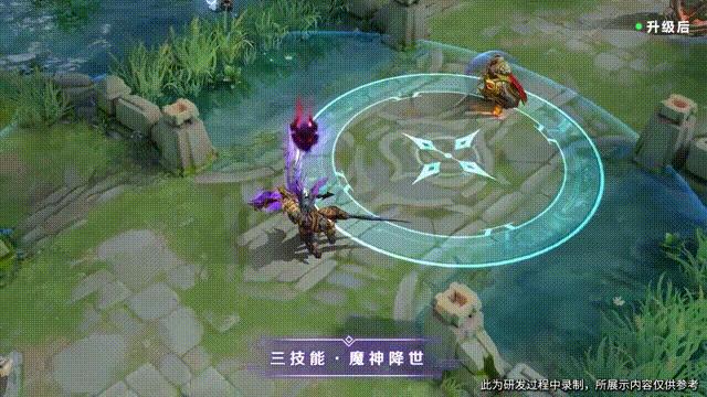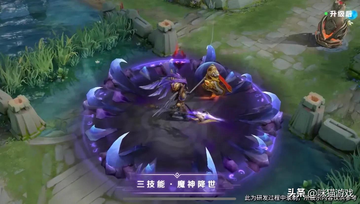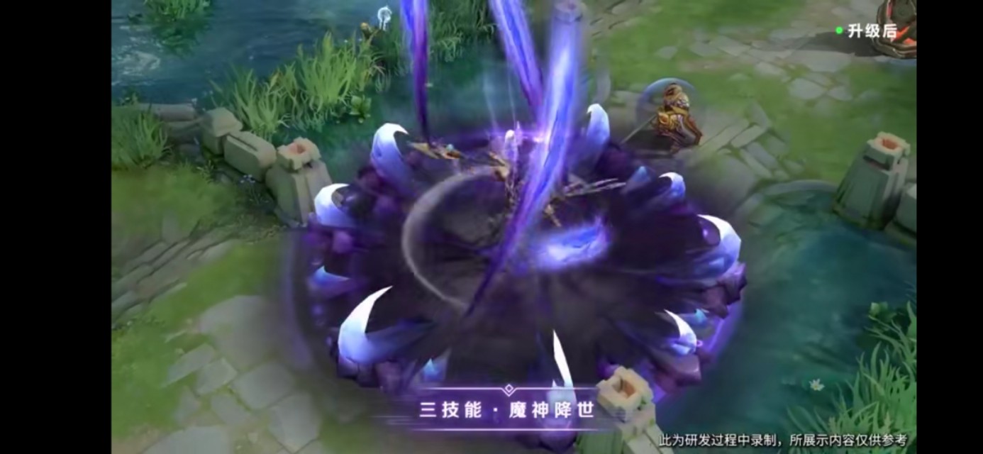 不得不夸一夸这个大招,这他丫的才是传说皮肤该有的特效啊,大招落地,犹如魔域深渊,看起来就不敢踩进去的感觉,魔气缭绕,霸气十足,威慑力增加了不是一点半点。