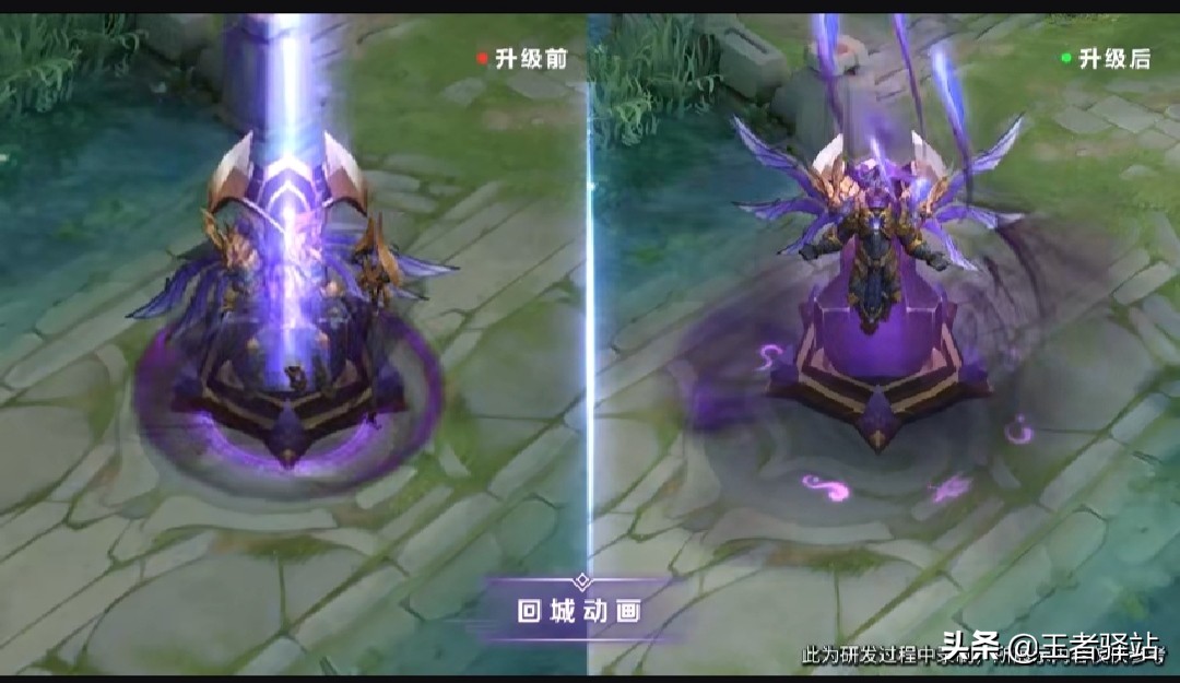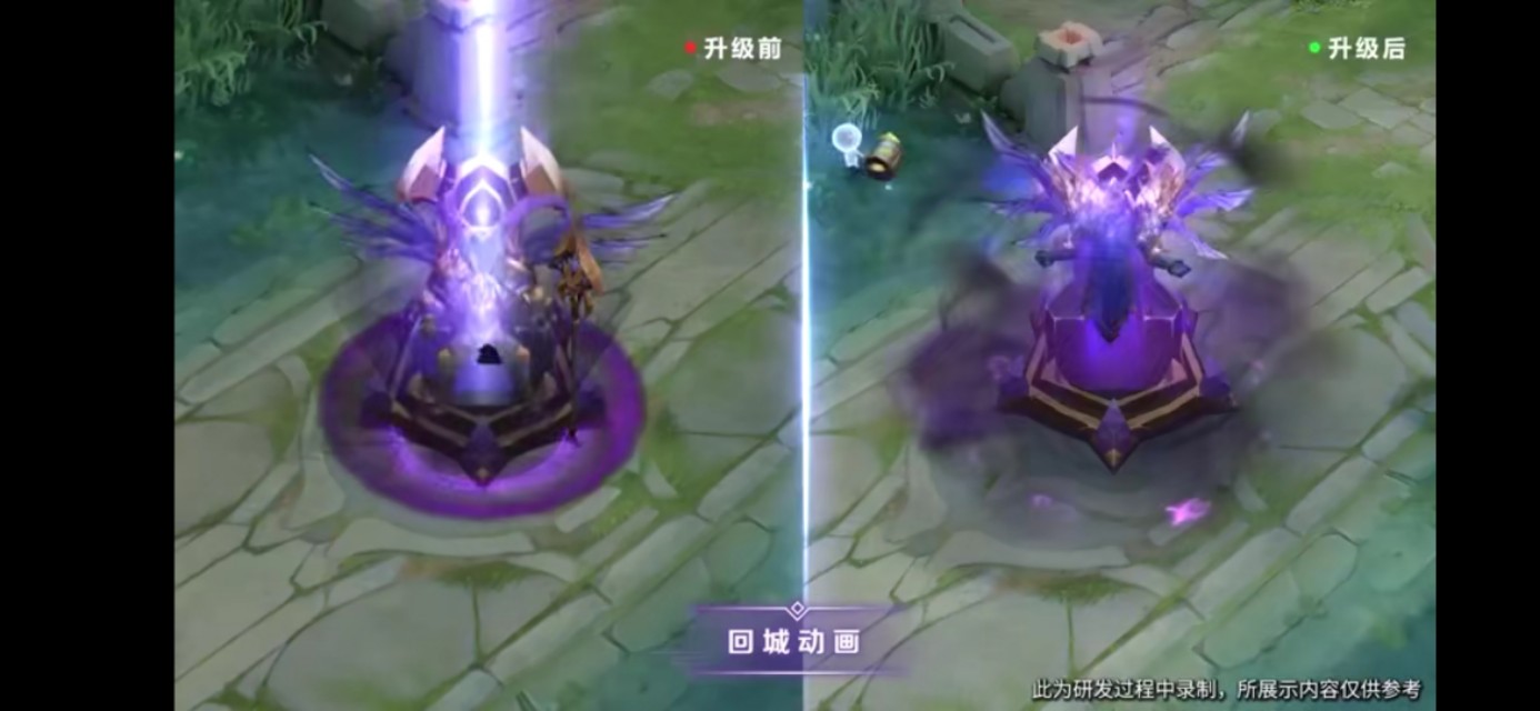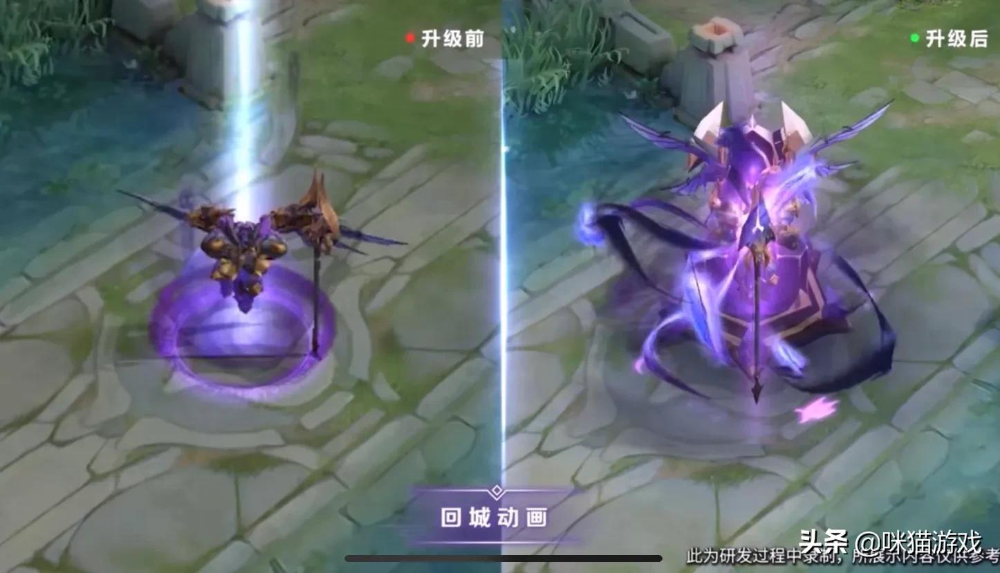 对于这一款皮肤,优化后的回城特效,很不错!同时原先的的回城特效也是很不错的!而这相比,我还是觉得新的回城特效更好看一些!主要是动作更复杂,光效看上去更多,两者以结合,看上去就比之前皮肤回城好了很多!