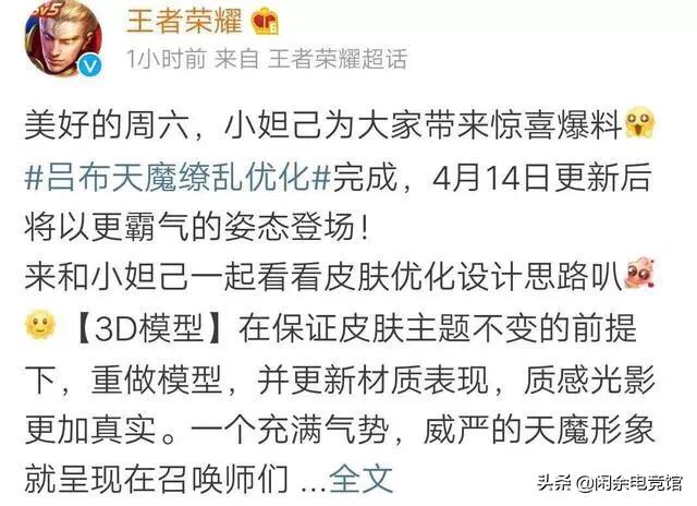 没错王者荣耀吕布天魔缭乱皮肤真的要来了!官方刚刚宣布这款皮肤的优化效果!从目前了解到的来看,皮肤变成一款真正的传说级别皮肤!尤其是出场动画,比之前好上几十倍!有一张动画CG的感觉!