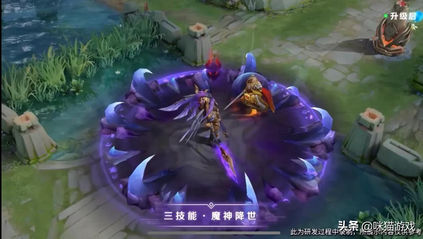 首先是出场动画,作为一个传说级的皮肤,以前的出场动画有点太过敷衍,新版本后的天魔真的有如天魔降世的感觉,如果找个词来形容,那一定是霸气!