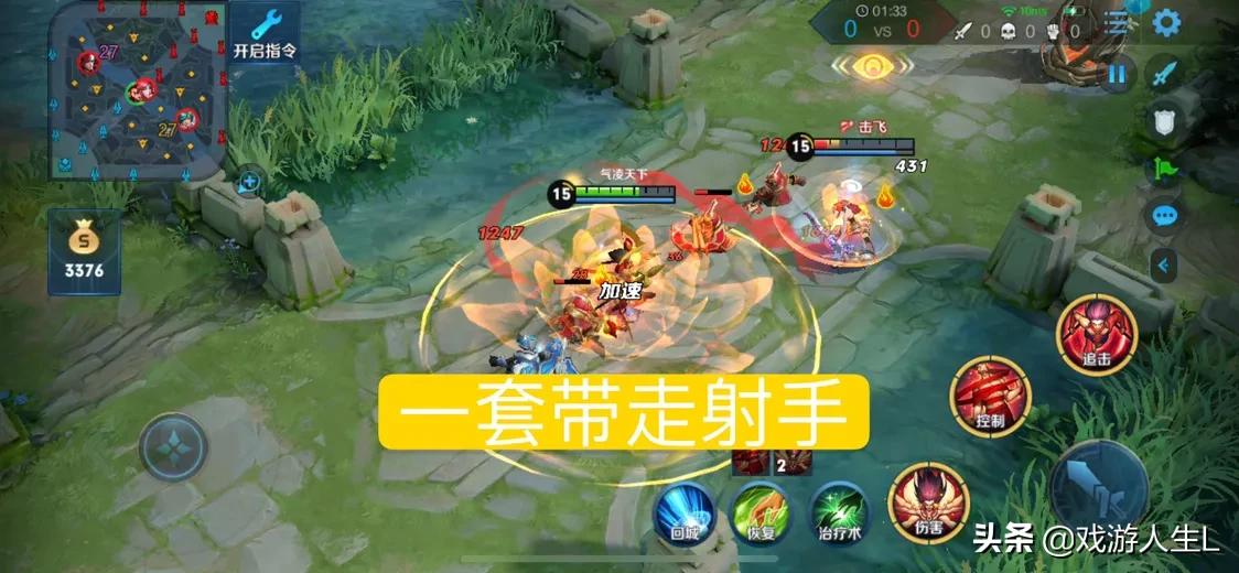 首先,打法上面一定要针对敌方的射手英雄使用大招进行开团,或者是使用大招追击敌方残血英雄
