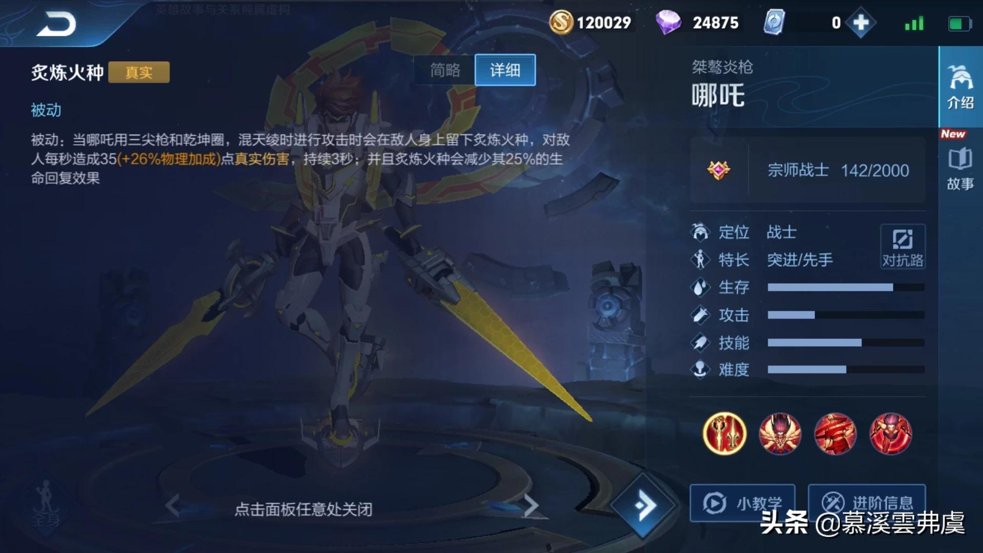 就以个人观点来看爆击流哪咤是比较肌力的。首先我们先了解下这个英雄的定位是:《战士》,技能方面我们下面用图解方式去了解更容易、清楚。我们都知道战士几乎都是《近战》,所谓的就是手比较短,加之战士攻速成长低!如果按照爆击流出装,从定位、技能特效上看,这样出装是给团队带来效益是最低的!