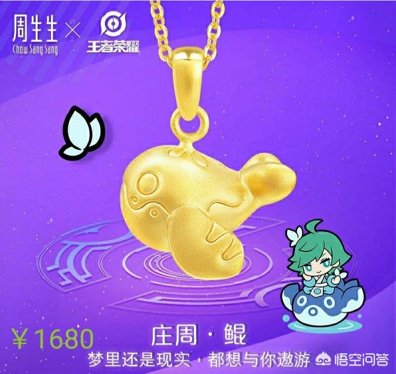 接着就是几款足金饰品了,这次的活动里一共会发放三款足金饰品:庄周、梦奇和妲己。其中庄周的是项链,可惜的是只做了一个鲲的造型,人物并没有做出来,但是整体的效果看起来还是挺不错的,就是售价比较贵,需要1680元。不过毕竟是足金的,所以卖这么贵也是很正常的。