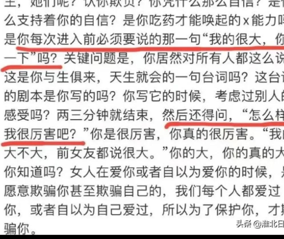 这样把别人的隐私抖出来,证明你也不是什么品德高尚之人。你揭发他犯罪就揭发他犯罪的问题,说这些你想证明什么?证明你阅人无数吗?我不是在为吴亦凡争辩,他有罪就该受到法律的严惩。但拿人家这样的隐私说事,只能体现你的无耻!