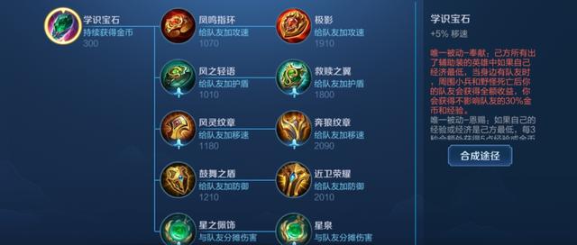 1.辅助装备:宝石。出了宝石,不会影响队友的金币和经验收益,补刀也等同于队友补刀,这就保证了你不用担心辅助分担你的经验和金币。