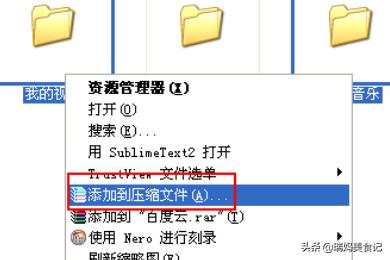 先选中需要压缩的文件,然后在已选择的文件中的任意一个文件上右击,并选择“添加到压缩文件”: