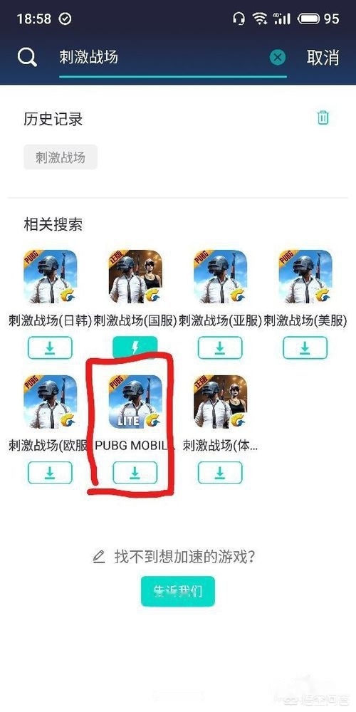 第五步 在官网进行更新之后,我们重新打开UU加速器,按照前面的步骤进行搜索下载即可,英文名的就是刺激战场国际服,点击下载按钮下载安装即可。