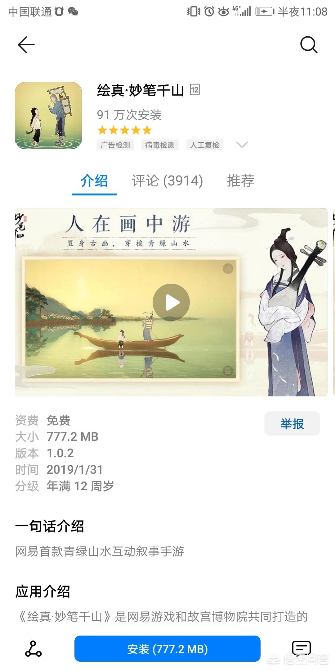 感到可惜这么好的游戏似乎并不大火,图五是我公测当天的下载量,如今一个月时间过去还没有突破100万下载量。有点可惜呢,不过玩过的玩家都表示比较满意,风景,音乐,画风都不错,还能定制自己的画卷,印章,进去之后想做的事情就是不停的截图截图。