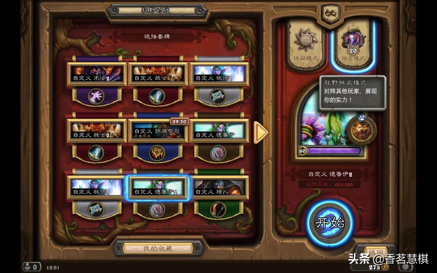 说句实话,狂野模式不适合新手玩家去参与,炉石经过多个版本,除非氪金,你根本就没有太多退环境的卡牌,因此进了狂野模式也是挨打的,与其这样,还不如去标准环境,合一套毒瘤卡组,拿低保,快乐一下就可以了。(土豪绕路[捂脸])