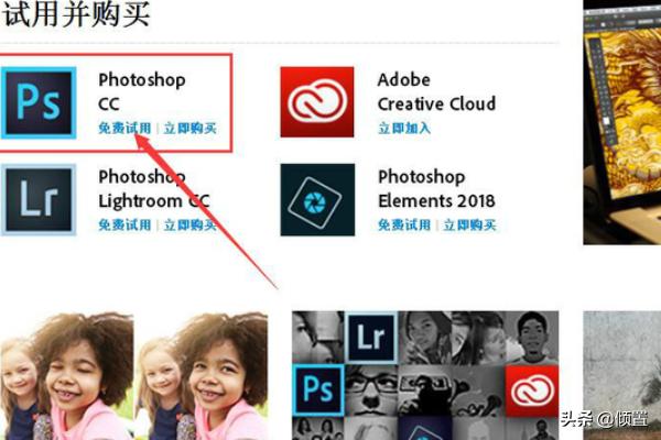 2,在官网页面中,可以看到PhotoshopCC软件的介绍页面,在该页面中,点击“免费试用”按钮。