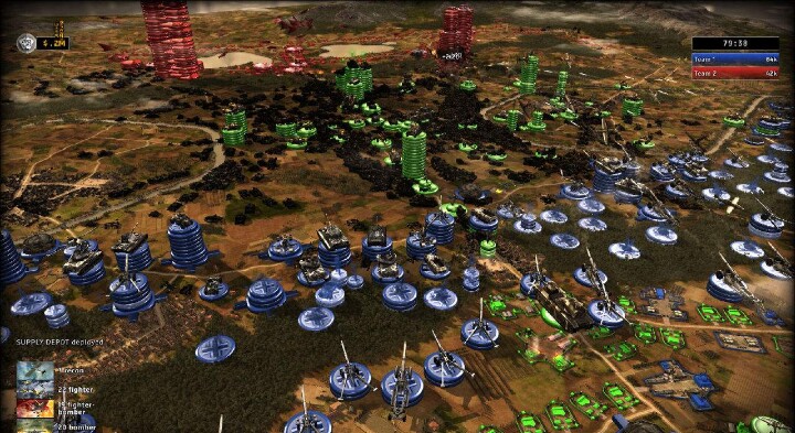 在单人游戏在战场中,还会有动画放出,展现战场上的信息和情况等。每个战役之间也会有CG,交代了战争的进展,作战计划等。镜头拉远,可以观察到整个战场的总体情况,就像在作战室中的沙盘。画面中每个部队都用圆盘标识,大的是重型单位比如坦克等,小的是轻型单位如步兵等。这样标识是战场上的情报一览无遗。镜头拉近,就能看到具体的情况。接近并观察对方究竟是什么部队,是否是伪装等。