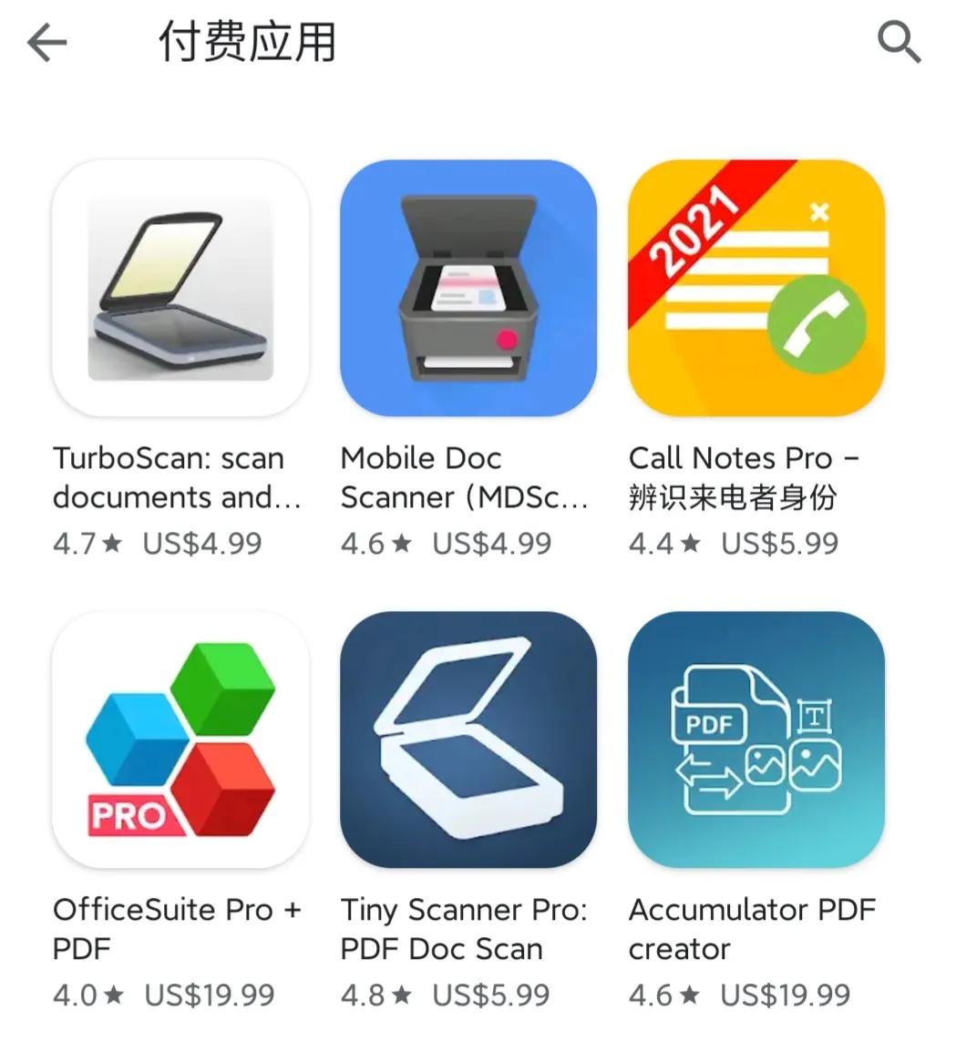 4.收费软件:这也是我用谷歌商店最重要的原因,好多软件其实是收费的或者需要花钱解锁全功能类似iOS上的收费软件,你直接下载apk也用不了,国内由于没有谷歌商店,只能用功能不全免费版或者破解版,破解版一个是更新不及时,第二怕里面附带木马一类的东西,总是让人不放心。花一点钱买到自己心仪的收费软件或者游戏还要去谷歌商店,虽然有些外国软件也有其他支付渠道,例如一些游戏国内第三方也可购买,但是种类有限一般是特供版,没有谷歌商店购买方便,很多不支持同步。下图就是几个谷歌商店的付费软件,你在国内顶多下到带广告免费版或者破解版。