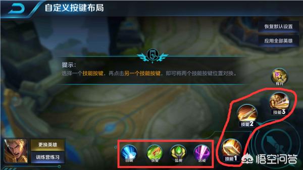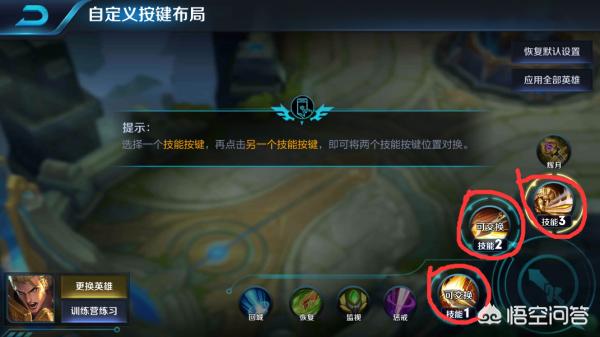 6、置完之后可以进入训练营来体验一下技能的使用是否顺手。如果设置的技能使用着不习惯的话可以点击右上角的“恢复默认设置”即可恢复原来的设置。