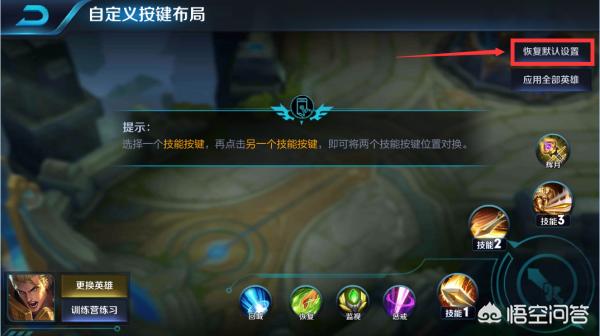 8、如果设置的技能使用着不习惯的话可以点击右上角的“恢复默认设置”即可恢复原来的设置。
