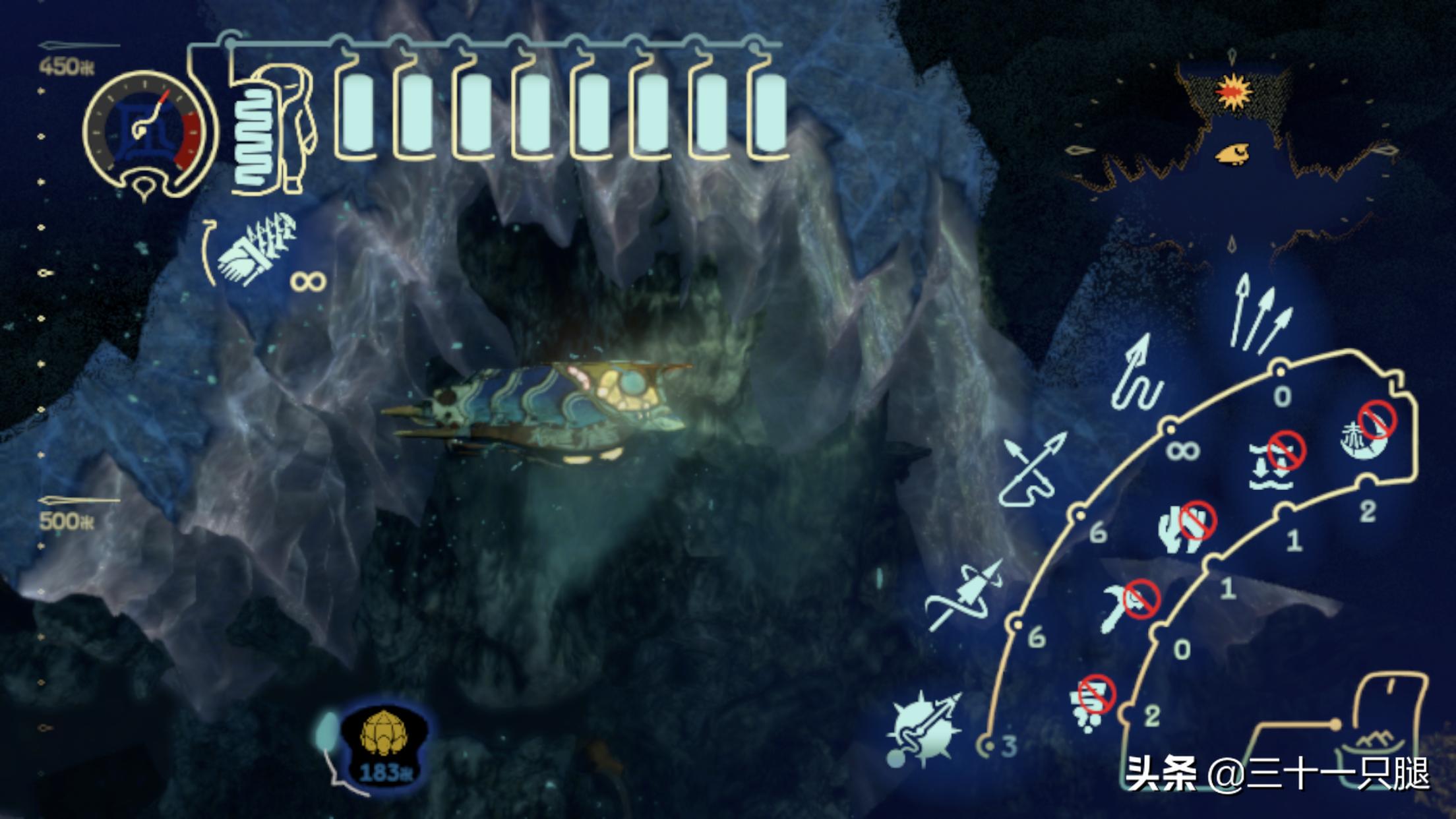 当然,游戏相对来说也有和比较有好的一面,比如你在潜艇里面就有无限的氧气,而且潜艇还能攻击,如果你的潜水服没有升级无法到达更深处,但坐在潜水艇里就可以。并且游戏中设置了多达10种的各种道具武器!