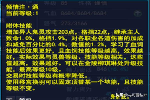 灵兽本身只具备3个普通附体技能格子,前期5格6格附体灵兽相对较贵所以只打三个普通附体技能普渡、当关、御决就足以