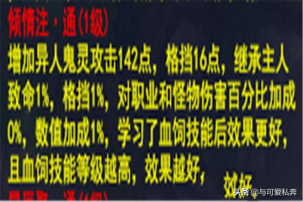 倾情注(核心职业附体技能,首要选择)可以增加鬼灵的攻击,以及攻击加成,使你的鬼灵更暴力