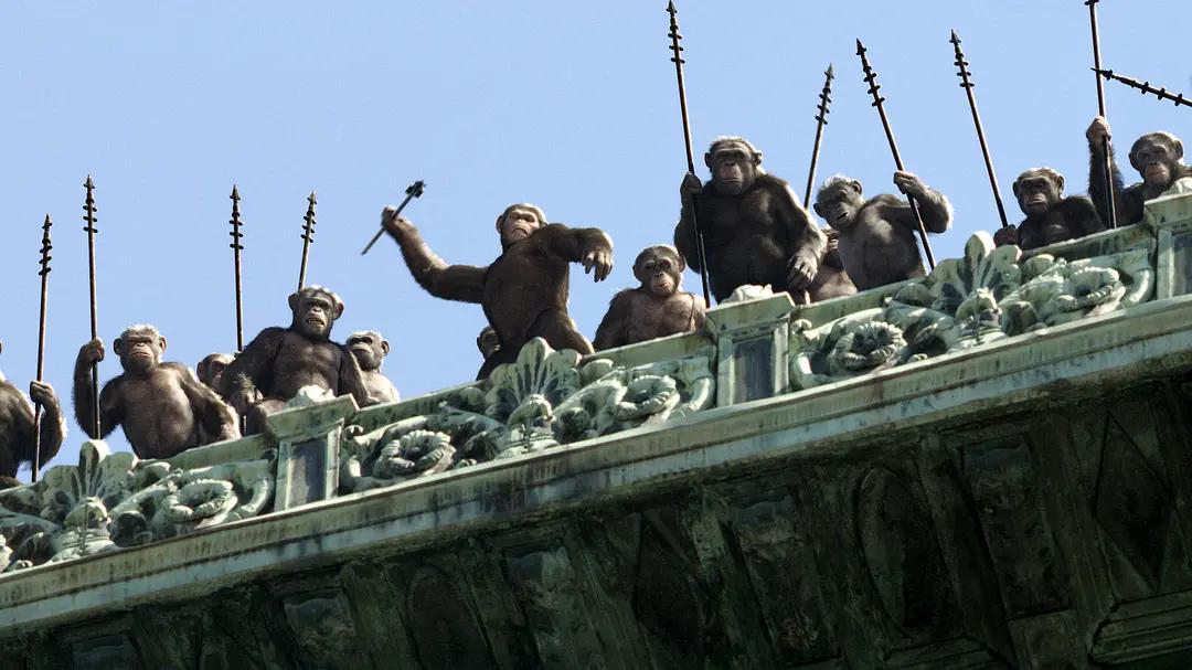 2.病毒已经折磨人类多年,大部分人类都已经死了,凯撒和莫里斯交谈时一度也认为人类灭绝了。后来凯撒受伤之后来到了它人类父亲的家中,从房子的破旧程度看来已经有多年没人居住在这里了。