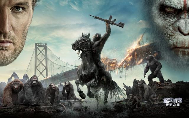 确实,海报上金门大桥是烧断了,电影中好像没有相关的情节。如果是这样,电影海报可能是一种隐喻,以烧断的大桥,象征猿人之战已经无法回头。