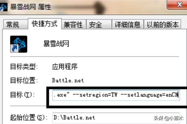2、第二部,在目标栏后面添加 --setregion=TW --setlanguage=enCN,前面要用一个空格隔开,TW代表亚服,CN代表简体中文语言。