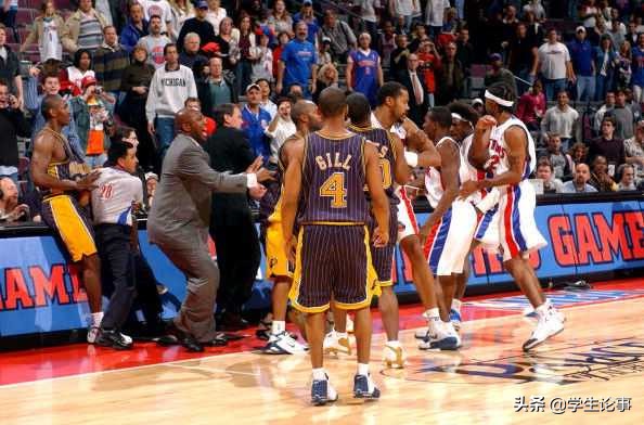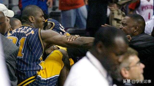 必须是奥本山宫殿那次斗殴啊!太震撼了吧,发生于2004年11月19日步行者与活塞队的比赛中,是NBA历史上规模最大,处罚最重,影响最恶劣的群殴事件。本次事件起因是罗恩·阿泰斯特躺在技术台上,一名球迷向他泼洒啤酒,导致阿泰斯特情绪失控。阿泰遂冲上观众席暴打球迷。斯蒂芬·杰克逊跟上,也暴打球迷。球员见状加入战团。因为暴打球迷,阿泰斯特被禁赛73场,停发所有薪水,损失高达499.5万美元。杰克逊被禁赛30场,杰梅因·奥尼尔被禁赛15场。活塞这边也有球员被禁赛。挑起和参与事端的球迷也受到了相应处罚。因为奥本山宫殿事件臭名昭著,这个名称发展为NBA群殴的代名词之一。