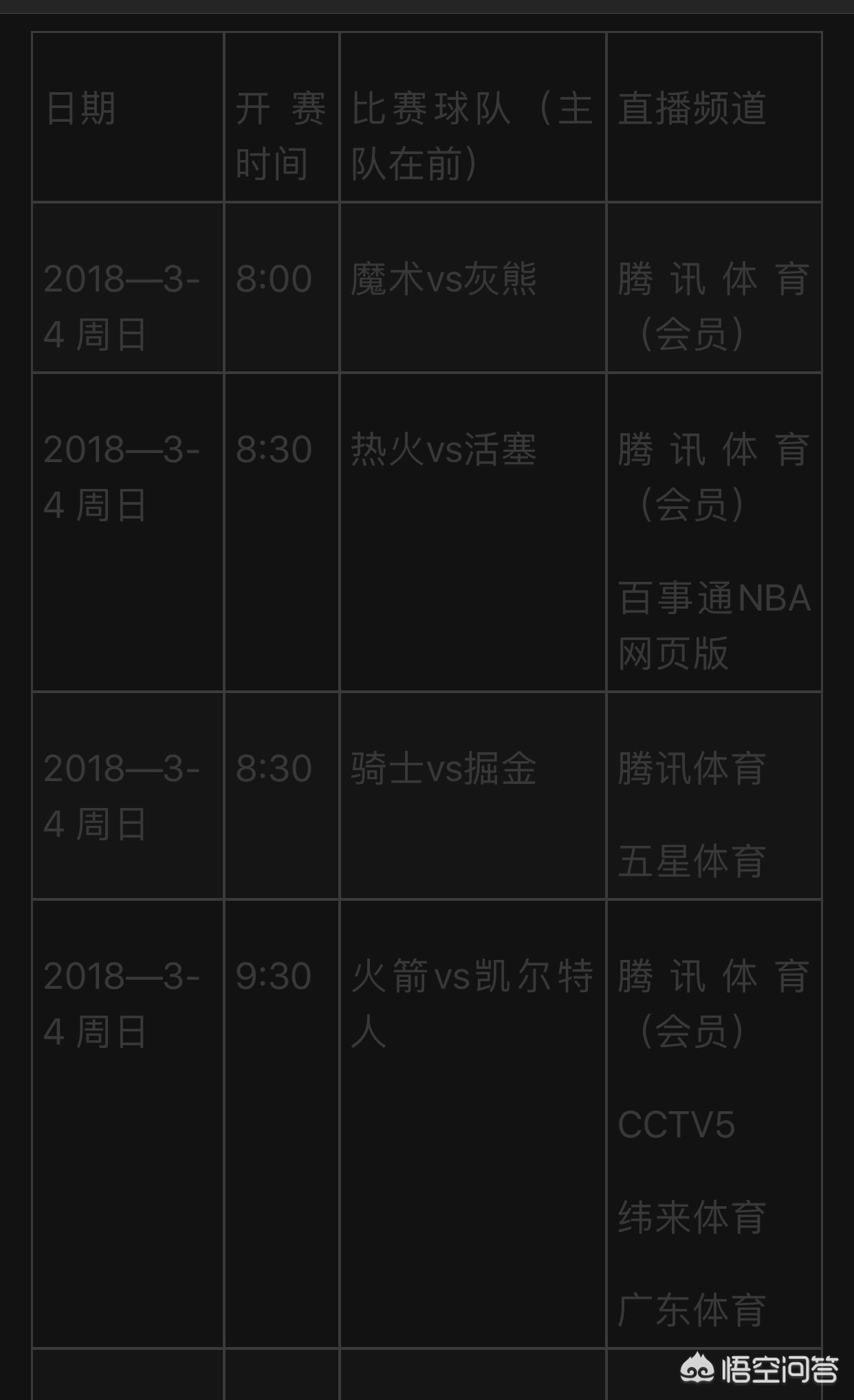 我帮您回答这个问题吧。我每天都在自己的头条号更新NBA的第二天比赛平台预告表。随着腾讯体育拿下了中国大陆的网络直播权,一举结束了近些年来的NBA中国大陆网络直播三分天下的局面。但随着腾讯的网络独播,许多看球的球迷深受会员场次的困扰,小编我也经历过。那么如何能够免费的看到自己喜爱的球队比赛呢?我来为您解答。