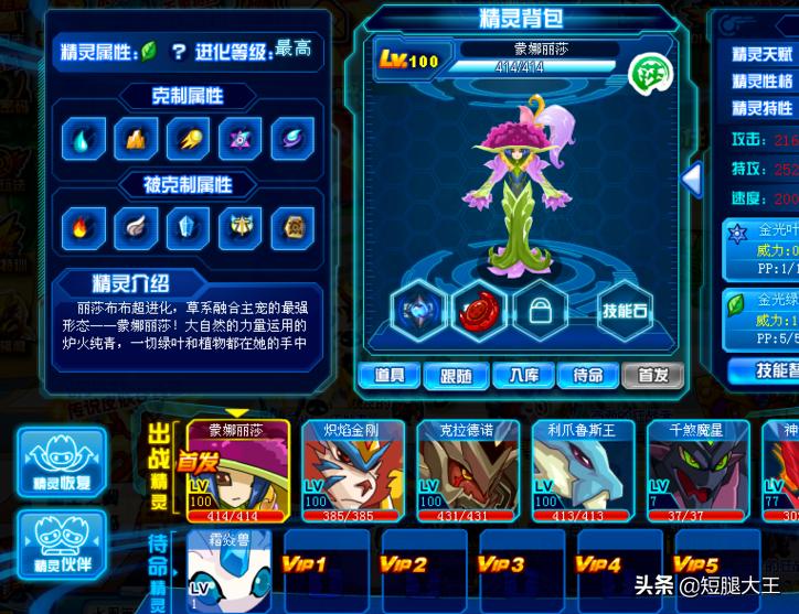 2,然后我们去精灵背包,装上三主宠,必须带蒙娜丽莎,利爪鲁斯王,炽焰金刚,其它的随便带。蒙娜丽莎的招按下面图片的配,其它精灵只要装上最厉害的招就可以了。