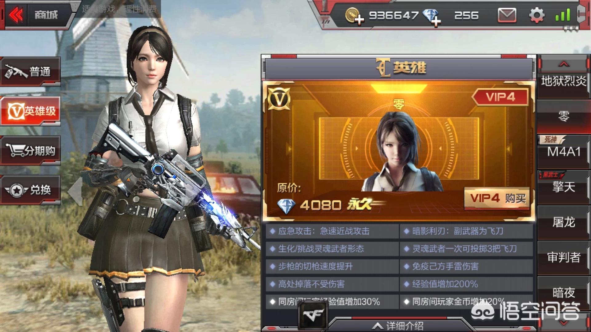 零也是英雄级女角色,零妹妹仿佛是一位刚出道的女孩,喜怒无常,天真可爱!副武器也是飞刀,近战可以快速攻击,也是一位技艺高超的女角色!钻石售价4080.
