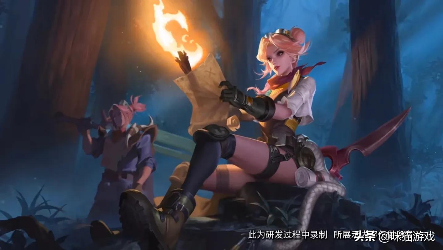下面是80级战令皮肤, S19赛季80战令皮肤已经确定为阿轲,皮肤名字目前是迷踪丽影。这款皮肤形象设计加入了护目镜、牛仔围巾、迷彩涂装、藏宝图等元素。同时采用更现代化的处理来体现阿轲新皮肤冷酷的感受。技能特效在刀光里加入了神秘的图腾图案,二技能用藏宝图和行进路线图表示探险的过程,三技能象征着在原始森林里探险,用了热带雨林的植物遮挡自己来隐身,并且一路在丛林中穿梭,劈开树枝和树叶。