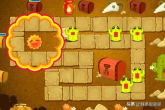 2.左边的宝箱打开之后会出现毒针和火焰瓶,用他们攻击下面的宝箱,宝箱可以打开一个冰冻星星。同时在太阳旁边建立一个大便。升到满级。