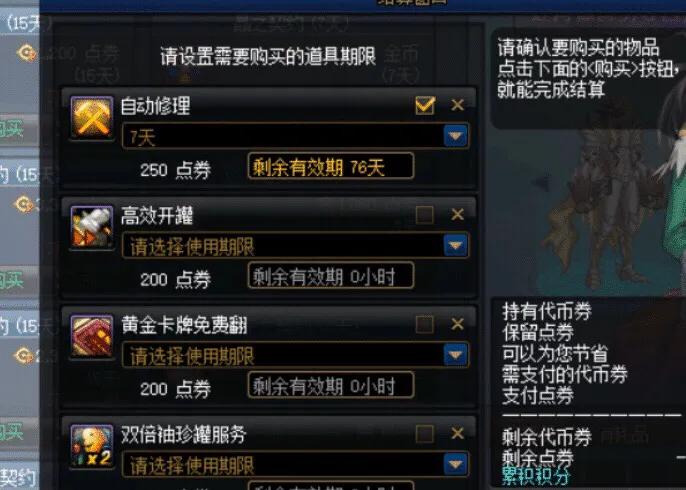 推荐各位勇士,在4月9日更新前,将自动修理购买至上限(上限为一年,大约需要60元)。