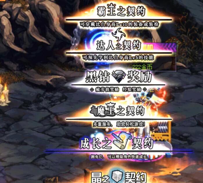 一个标准的地下城玩家,不仅需要跟随版本的装备,各种属性加成同样不能少,达人契约是提升玩家技能伤害的重要属性,而黑钻可以比普通玩家多出来一些疲劳值,使用黑钻硬币可以开出疲劳药和一些物品,比如一直要扔掉的牛奶,这些属性都相对的比较单一,而魔王契约则承载了玩家的方方面面。