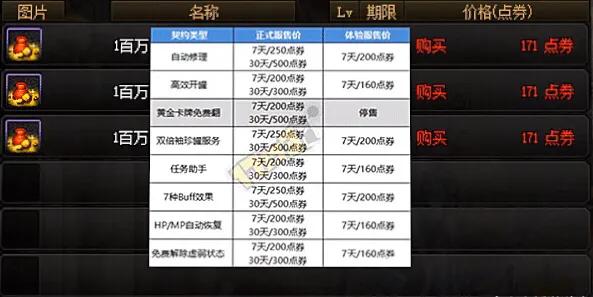 高效开罐这个大多数玩家用不到,但是自动修理和黄金卡牌这两个算是玩家用得最多的道具了,单独自动修理也几乎算是全民道具了。任务助手在当前版本几乎没什么用了,在当前的深渊版本解除虚弱同样比较鸡肋,但体验服的更新把30天的使用时间全部删除了,换句话说玩家只能选择7天200点券的,而这将近翻了一倍的价格。