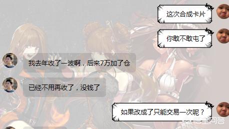 在以前的版本里,曾以活动形式推出过好几次合卡,简单说就是用蓝卡与蓝卡合成,可以有几率出现紫卡,而用白卡合成就有几率出现蓝卡,以此类推。于是以前很多人都看中了这个机会,在刚出消息的时候就屯上几千上万张卡,等活动出来之后甩手卖掉,这样就可以大赚一笔。