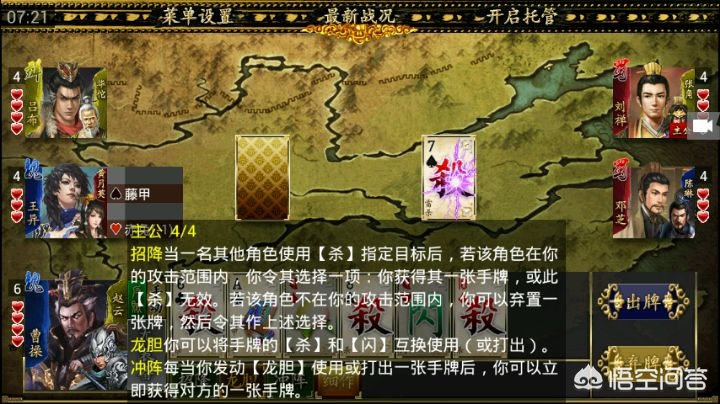 简介:非常烧脑的卡牌游戏,你可以单机AI也可以蓝牙对战,或者联网多人,游戏中共有四种类型的角色,主公、忠诚、反贼、内奸、还有不同的英雄分为文官和武官,都有着不一样的技能和,你可以和队友(AI或朋友)组合出各种不同的英雄搭配,简单来说就是用《三国杀》统一华夏。