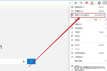 在列表内找到“新建Inprivate窗口”或者按下快捷键“Ctrl+Shift+N”。
