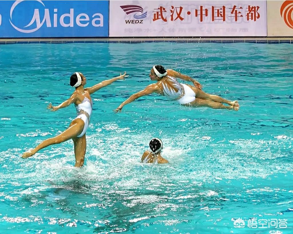 三、水上芭蕾;身材火辣、婀娜多姿的女运动员们,在水面上翩翩起舞,像足了美丽的天鹅。