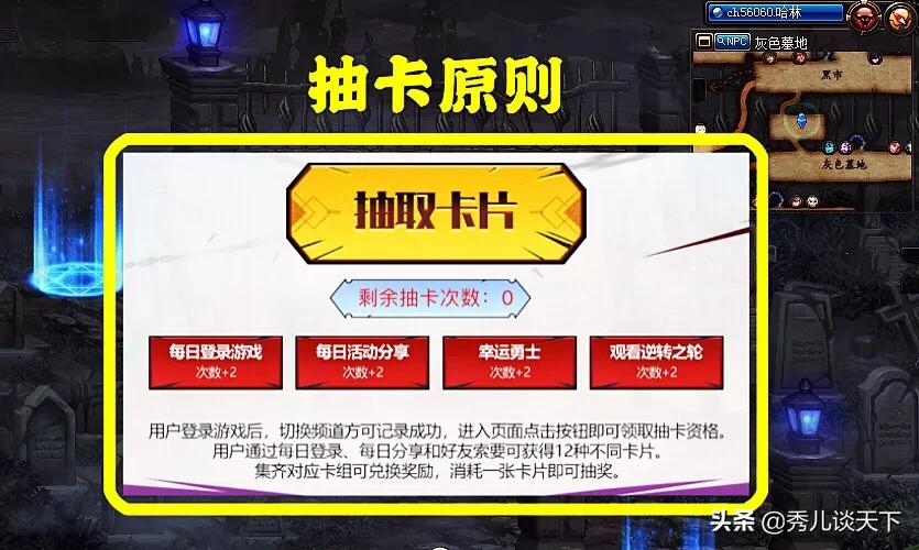 本次活动抽卡机会获取,可以通过每日登录获取2次,分享活动获取2次,看动画获取2次,幸运用户额外多2次抽卡机会;获取的卡片同样可以赠送,每一个账号每天最多被赠送4张卡片。